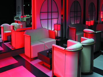 | Caffe Armani, decoraçao toda inspirada em jogos de cartas, em detalhe as mesas do restaurante/Caffe |